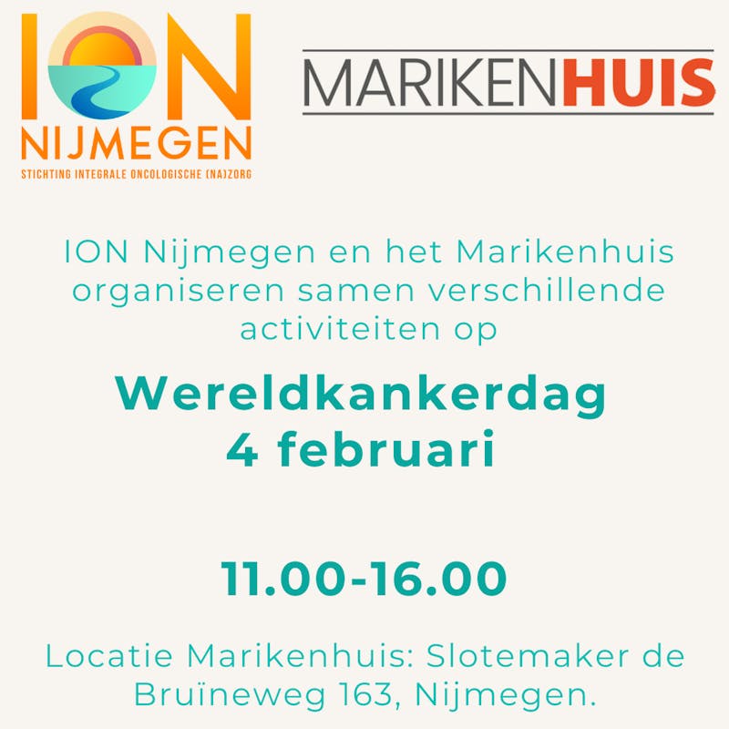 Het Marikenhuis opent zondag haar deuren van 11.00 – 16.00 uur en je kunt deelnemen aan verschillende activiteiten, aangeboden door ION (Stichting Integrale Oncologische Nazorg) en het Marikenhuis. Maak kennis met beide organisaties, de medewerkers en vrijwilligers, en ontdek wat ze voor je kunnen betekenen.
