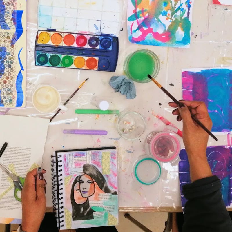 Mixed media & druk ✂️: kliederen, scheuren, plakken & printen met Rianne