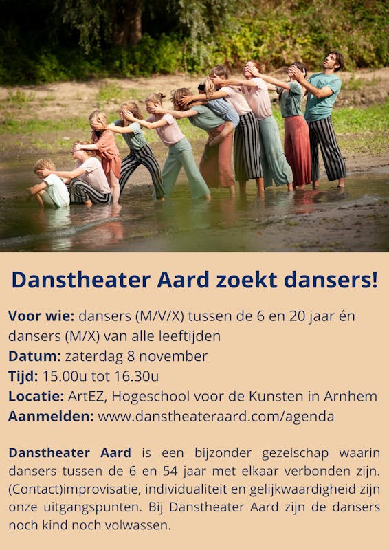 Nieuwsgierig? Voor meer informatie en aanmelden kan je terecht op onze website: www.danstheateraard.com/agenda/auditie-dansers