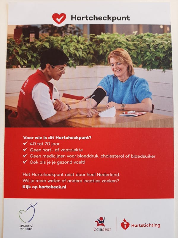 Het Hartcheckpunt is een initiatief van de Hartstichting, in samenwerking met STIP Noord en 2diabeat. Een mooie kans om stil te staan bij je gezondheid, ook als je je goed voelt.