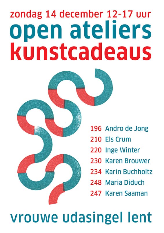 Zondag 14 december a.s. 12-17 uur openen wij onze ateliers aan de Vrouwe Udasingel in Lent voor publiek.
