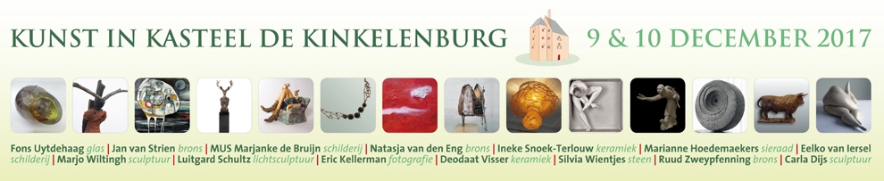 De kunstexpositie in Kasteel de Kinkelenburg vindt plaats op zaterdag 9 december. Het kasteel is van 11 tot 17 uur opengesteld voor het publiek. 14 kunstenaars tonen hun nieuwste werk. De heer Louis du Pré (voorzitter Ondernemers Vereniging Bemmel) opent zaterdag 9 december, om 15.00 uur, de expositie met een welkomsttoespraak. U kunt genieten van Singer/Songwriter Kris van Son.