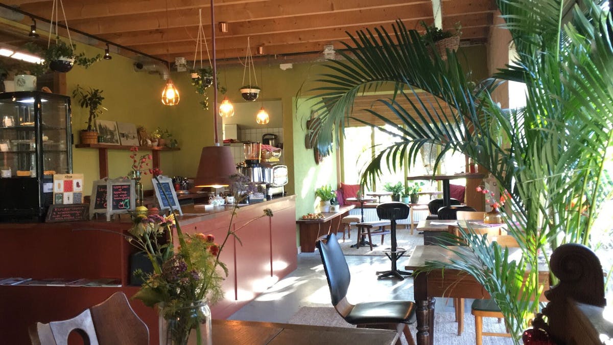 Ons café is open, dus zoek een fijn plekje in de zon op het terras of in de boomgaard.