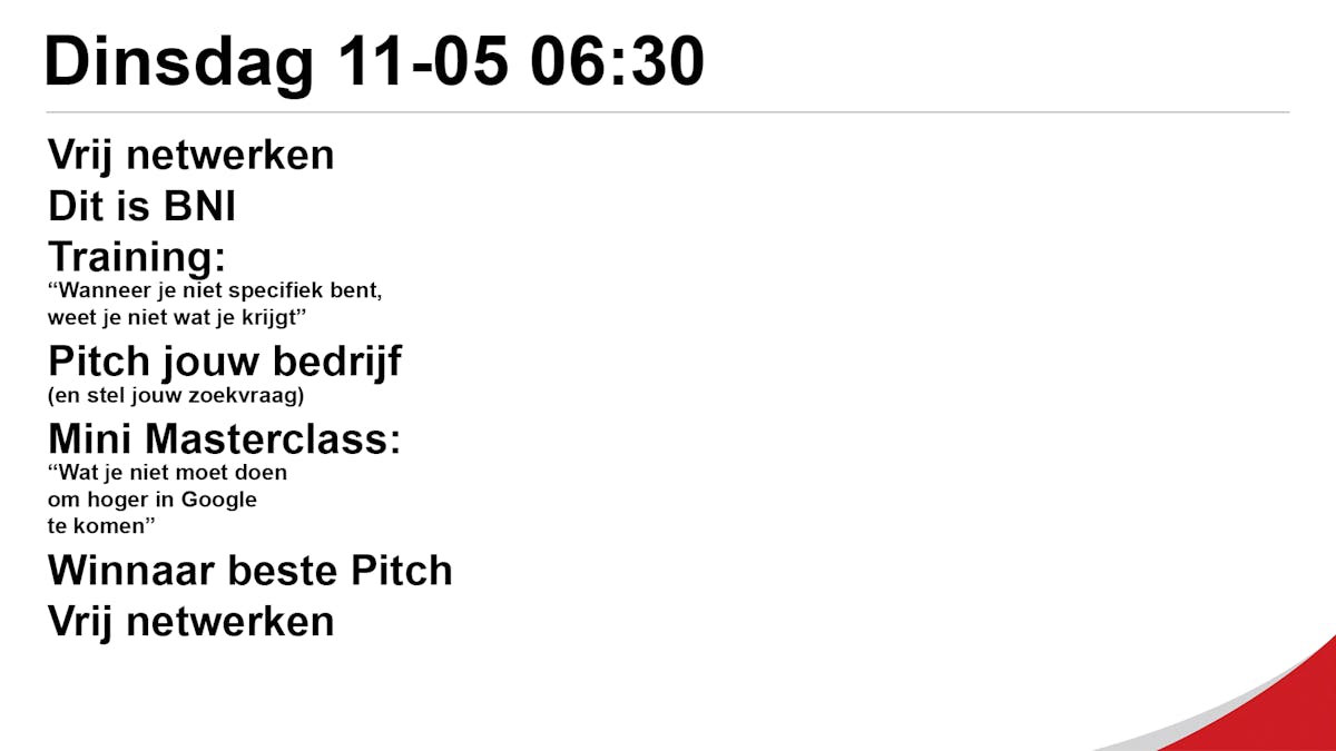 Komende dinsdag gratis jouw zakelijk netwerk vergroten en jouw kennis over SEO (zoekmachine optimalisatie) bijspijkeren? Mail me op en je krijgt van mij een gratis uitnodiging voor BNI Bordeaux!