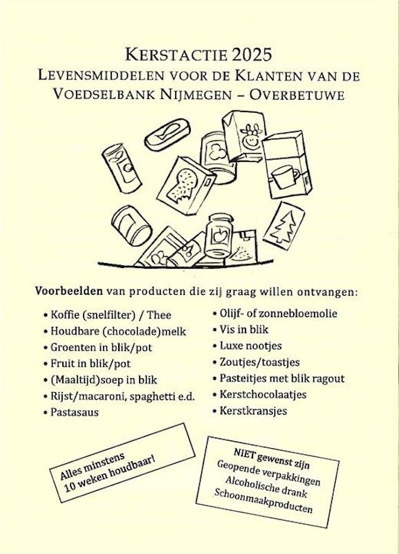 Kerstactie voor de Voedselbank – Lent doet mee! Ook dit jaar zamelen we in Lent weer dozen in voor de Voedselbank. Daarmee krijgen gezinnen in Nijmegen, Lent en Overbetuwe ee...