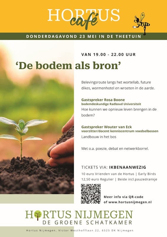 Het eerste Hortuscafé van dit jaar in Hortus Nijmegen gaat over de bodem als bron. Willen we ons ecosysteem herstellen en koesteren, dan moeten we bij de basis – de bodem – beginnen.