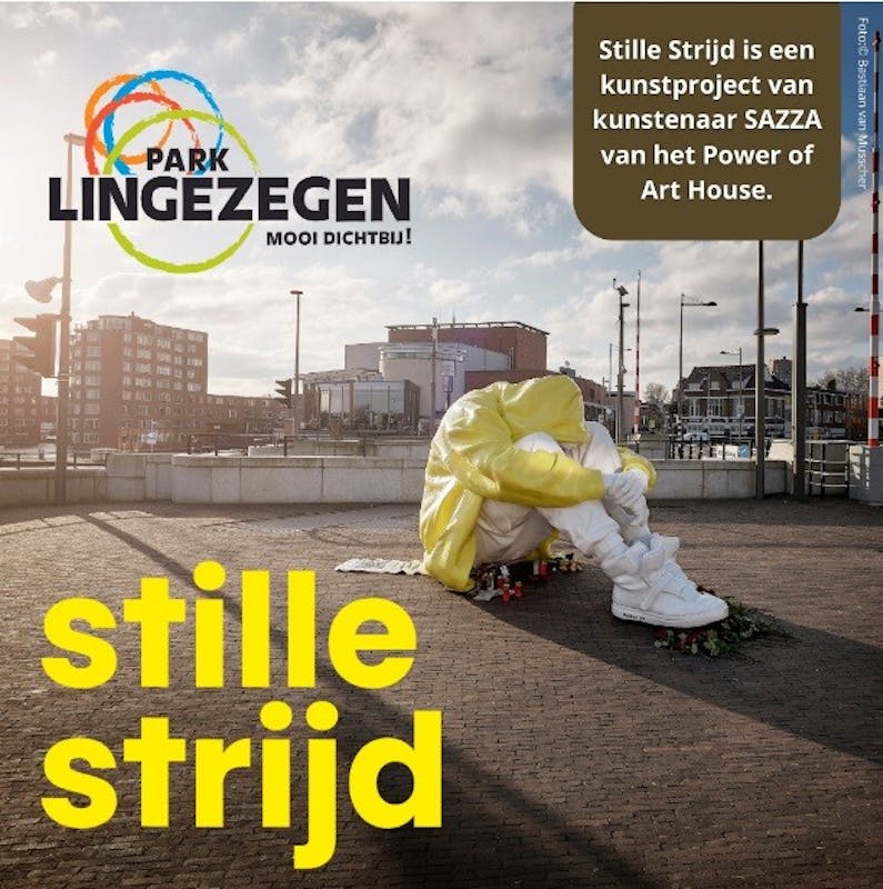 Stille Strijd is een kunstproject van kunstenaar SAZZA van het Power of Art House. Met een metershoog beeld van een ineengedoken jongere vraagt het kunstwerk aandacht voor de urgente problematiek van depressie en zelfdoding, de grootste doodsoorzaak onder jongeren onder de 30 jaar in Nederland. “Er rust een behoorlijke taboe op depressie, terwijl praten juist zo belangrijk is om het isolement te doorbreken. Dit beeld schreeuwt om aandacht.” aldus kunstenares Saskia Stolz.