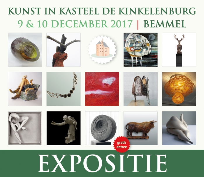 De kunstexpositie in Kasteel de Kinkelenburg vindt plaats op zaterdag 9 december én zondag 10 december. Het kasteel is van 11.00 – 17.00 uur opengesteld voor het publiek. 14 kunstenaars tonen hun nieuwste werk. Laat u verrassen door de verscheidenheid van de kunstwerken. De werken brengen zowel de schoonheid van kunst in beeld, als de eigenheid en de ziel van de maker. Naast schilderijen, sieraden, fotografie en lichtsculpturen vindt u bij ons beelden in diverse materialen en technieken: keramiek, glas, brons en steen.
