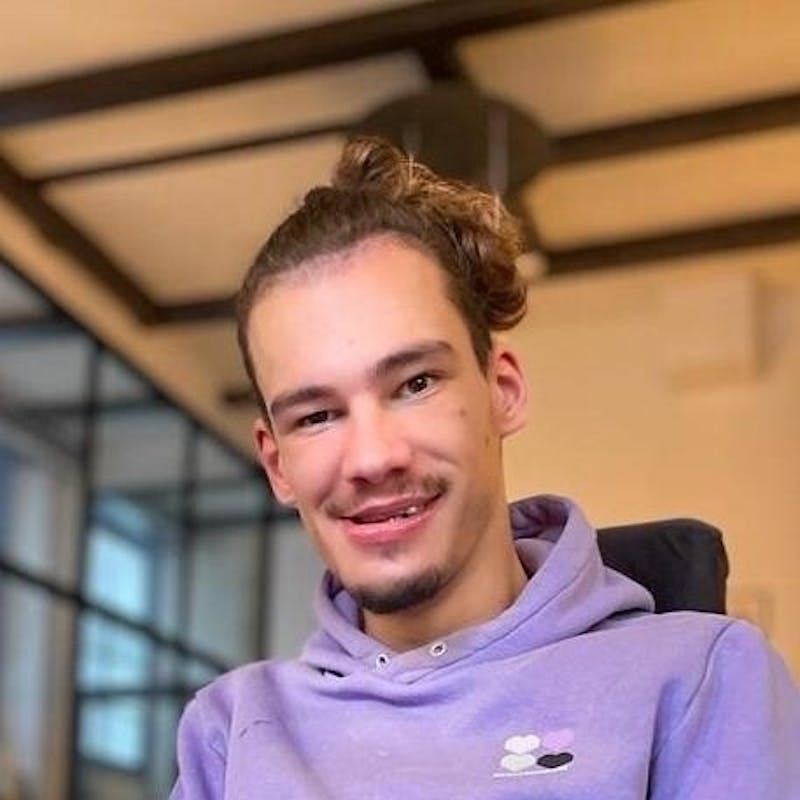 Ik heb een motorische beperking, waardoor ik in een rolstoel zit en moeilijk te verstaan ben. Ik had een klein zuurstofgebrek bij de geboorte, ach ja, een kleine geitje hou je toch. Maar als je me iets beter leert kennen, zul je ontdekken dat ik een echte levensgenieter ben! Ik hou van verschillende bezigheden, zoals lekker een terrasje pakken in de zon, af en toe een filmpje pakken en met vrienden wat ondernemen. En natuurlijk stappen.