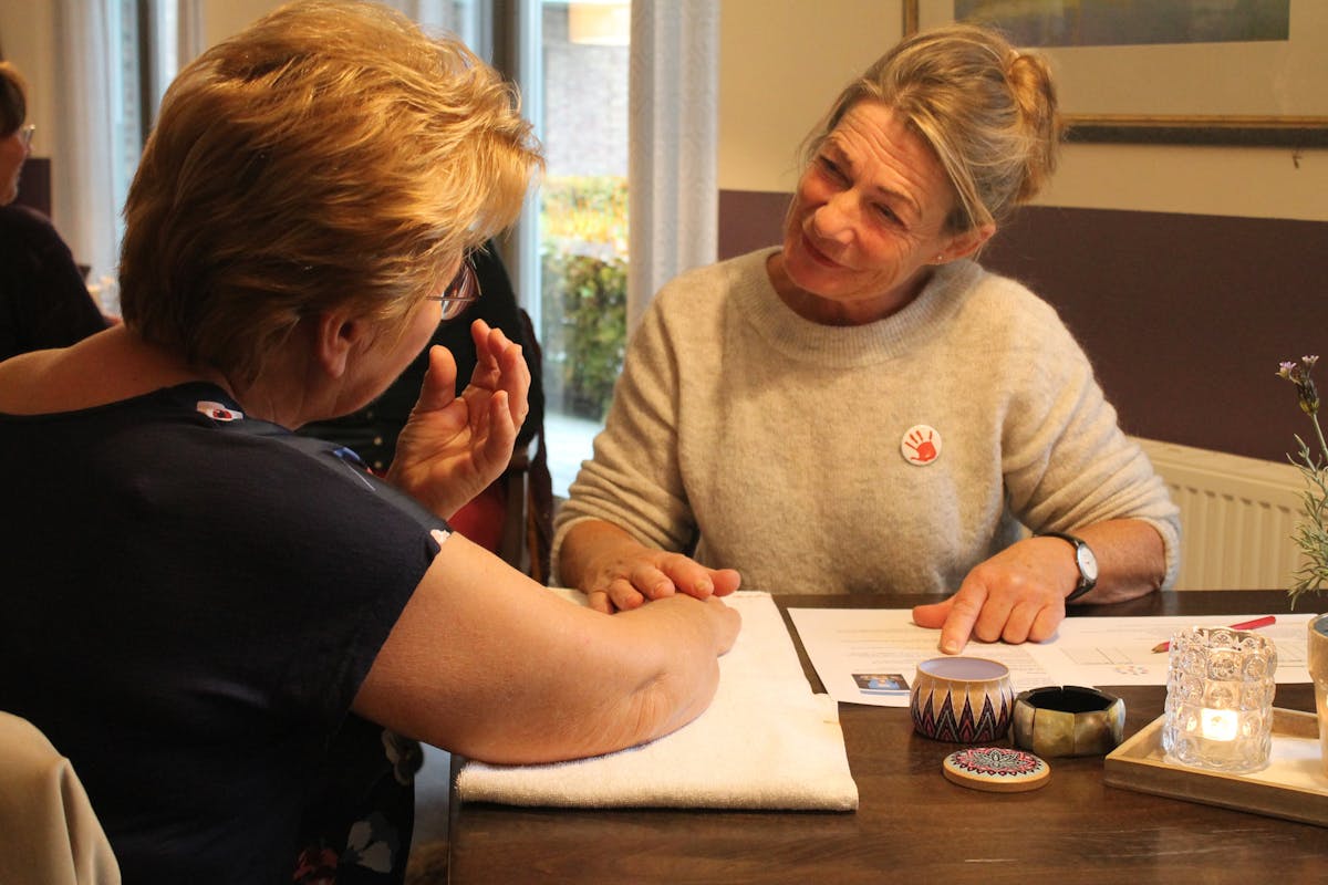 Bent u geïnteresseerd in een contactmoment, een gesprek van waarde en/of een handmassage, neem dan contact op met Elize van Heuveln via