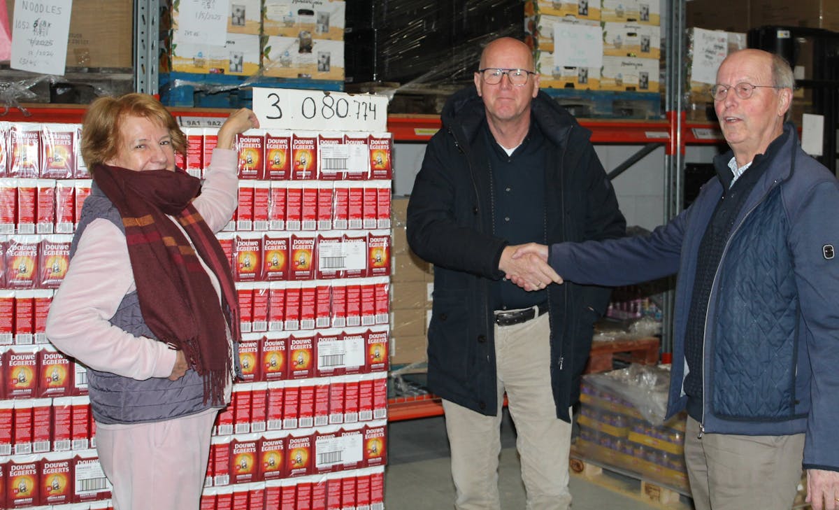 Officieel de 3070 pakken Douwe Egberts koffie in ontvangst genomen uit handen van Lions Nijmegen Brabantsepoort.