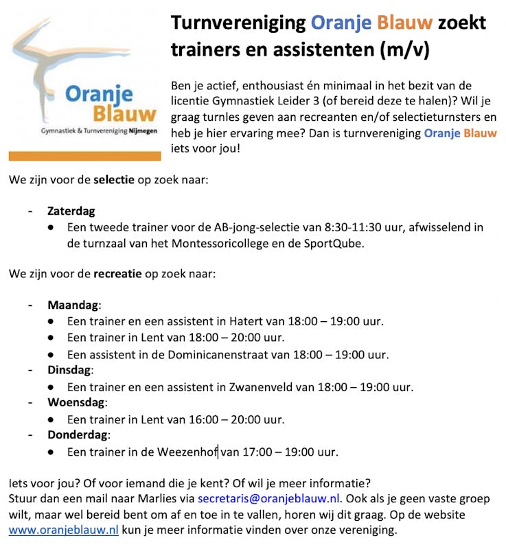 Meer berichten van Turnvereniging OranjeBlauw Nijmegen