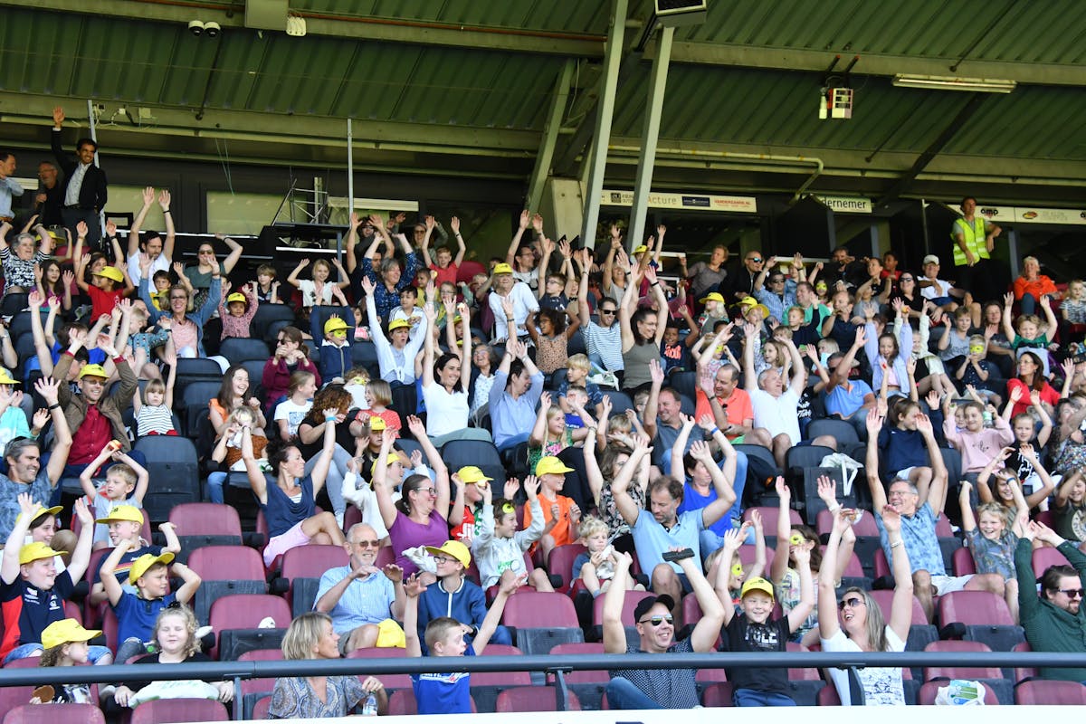 De Wijkhelden werden welkom geheten door Bart de Bruin, directeur Dar, gevolgd door Wilco van Schaik, directeur N.E.C. Terwijl een paar Wijkhelden, gehuld in een N.E.C. shirt van de tribune liepen om een gesigneerde bal van Wilco in ontvangst te nemen, klonk het geluid van een vliegtuig boven het stadion. Niet veel later landde met een parachute, Dar-medewerker Erwin en zijn medeparachutist. Na deze spectaculaire opening ging het woord naar wethouder André Springveld, gemeente Druten en Bart de Bruin van Dar. Bart overhandigde symbolisch de gouden knijper aan André Springveld. Want in Druten is volgend jaar het tweede Wijkheldenfestival als corona dit toelaat. André Springveld: “Ik ben ongelooflijk trots op jullie allemaal. Wat is het goed dat er al zoveel Wijkhelden zijn die hun eigen buurt schoonhouden. Mijn wens voor volgend jaar is dat alle Wijkhelden een vriendje of vriendinnetje enthousiast maken om ook Wijkheld te worden. Dan hebben we volgend jaar maar liefst 9000 Wijkhelden in de regio. Dat zou fantastisch zijn.”