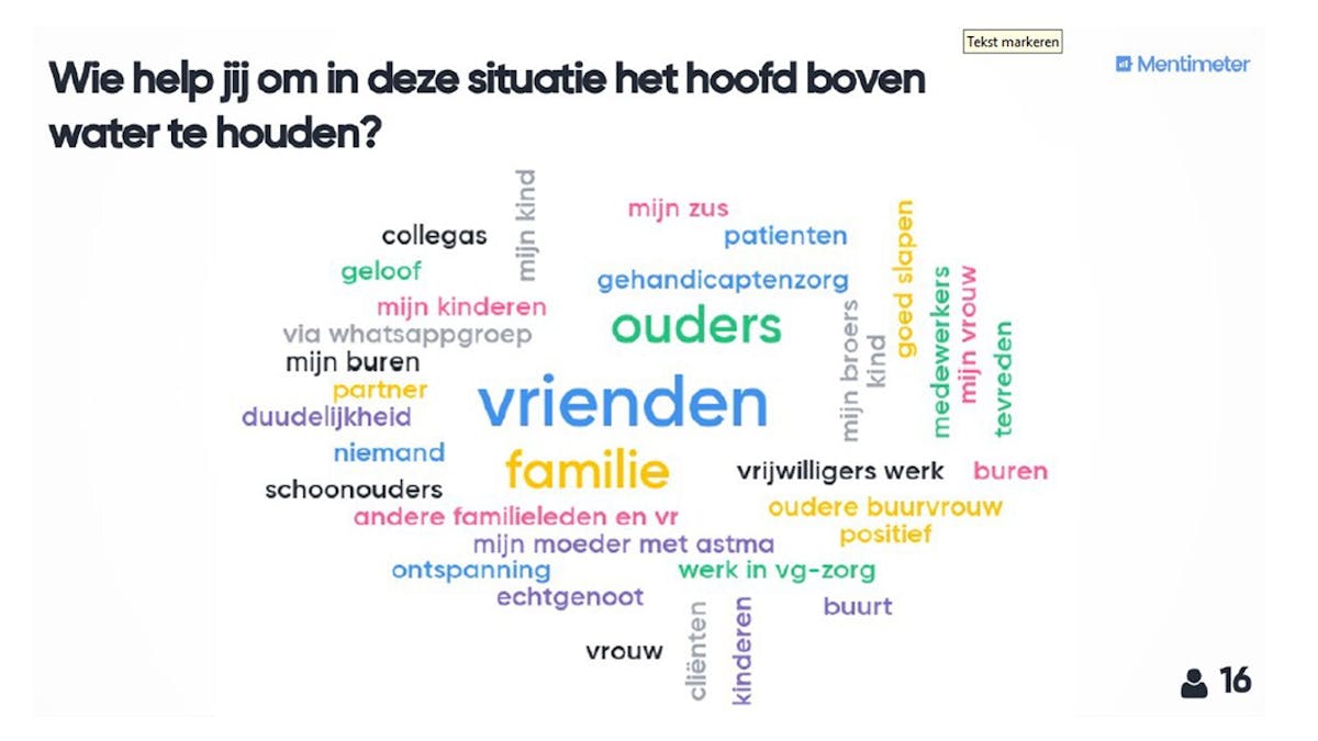 16 mensen hebben gereageerd en dat heeft onderstaande wordcloud opgeleverd. Dank jullie voor je reactie.